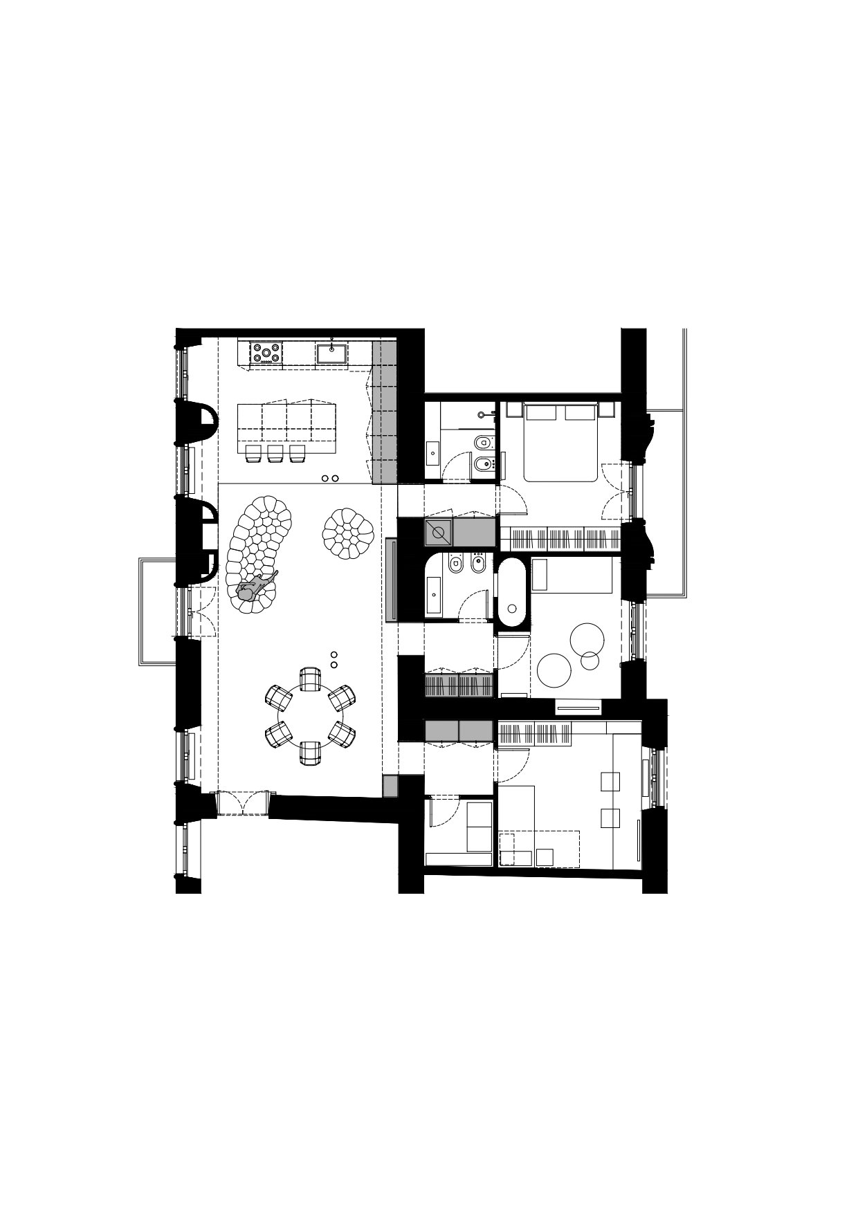 Conciliare il piacere della convivialità e l’attitudine alla rappresentanza con il bisogno di funzionalità, dettato anche dalla presenza di due figli ancora piccoli: questa la sfida raccolta per la ristrutturazione di un grande appartamento in un edificio storico del quartiere Mazzini, dove la tradizione borghese della Capitale è animata da un’intensa vita lavorativa e commerciale.