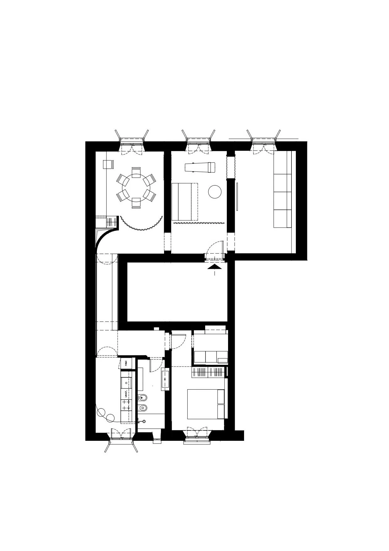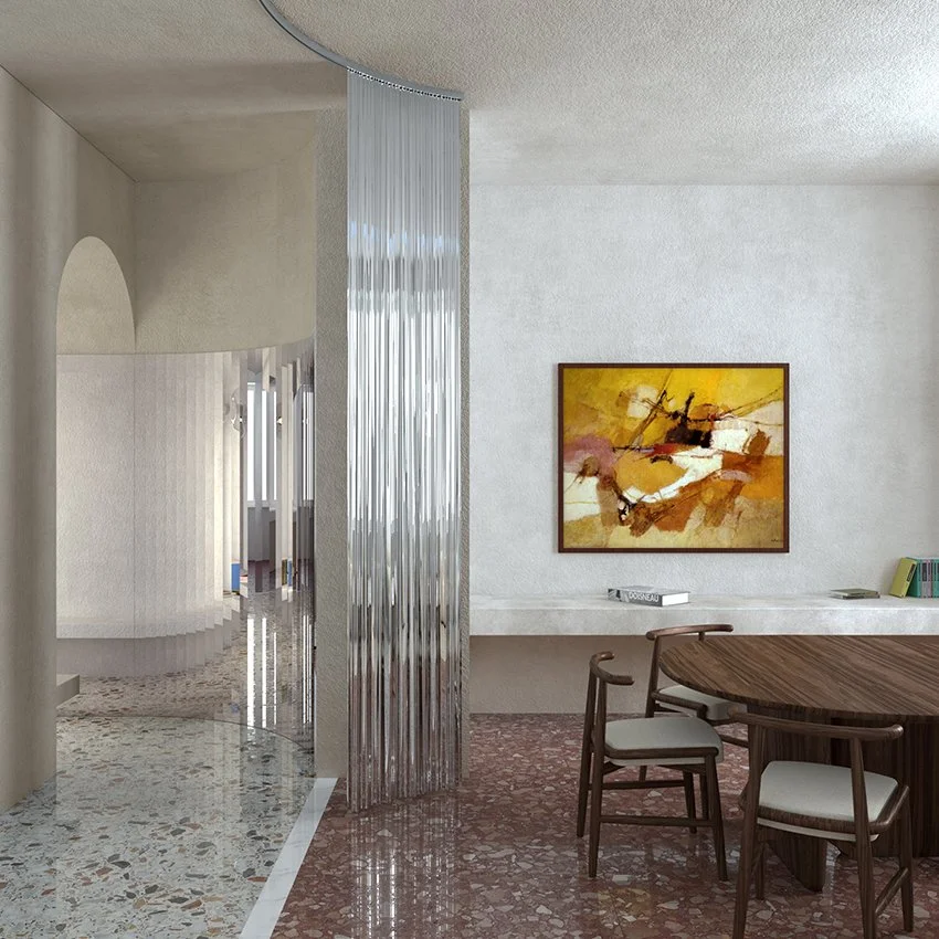L’appartamento, al piano alto di un edificio storico, è una successione di stanze inondate di luce, una sequenza di scene il cui filo conduttore è l’alternanza continua di delicati contrasti, nei colori e nelle finiture. Superfici lucide e cangianti si alternano a pareti ruvide, pavimenti di un tempo dialogano con nuovi inserti contemporanei.