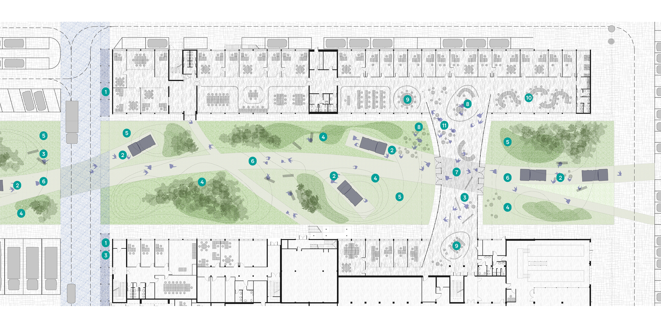 Per questo tra gli obiettivi primari c’è quello di restituire alla sede una visione d’insieme, unitaria e flessibile, che sfrutti questa caratteristica ottimizzando l’estensione del suo sistema di fabbricati e funzioni. Affinché la storia scorra con coerenza, occorre che tutti gli elementi siano organizzati in modo armonico, come un coro. Si interviene quindi alla scala urbana, conferendo senso di unitarietà narrativa a tutta l’area, migliorandone identità, accessibilità e visibilità da diverse prospettive.
